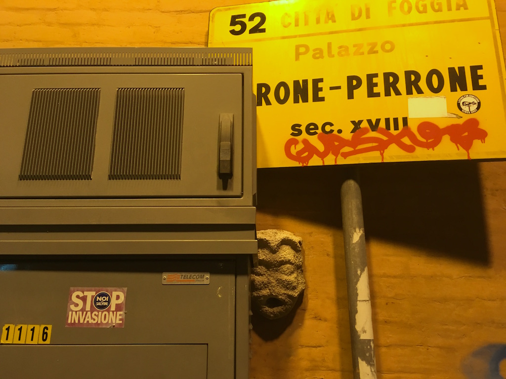 Possibile. Ormai siamo così abituati alla bruttezza che non ci facciamo neanche più caso. Non so dirvi quando quella centralina è stata installata, se sta lì da qualche settimana o da qualche anno. Ci sarò passato centinaia di volte, non me ne ero mai accorto. Forse anche perché quel tratto di piazza, tra scritte sui muri, cartelli imbrattati e annunci pubblicitari, è così degradato che si preferisce voltare lo sguardo da un’altra parte. Me ne sono reso conto soltanto grazie alla segnalazione dell’amico Giovanni Cataleta, acuto osservatore delle cose foggiane, che qualche sera fa ha voluto portarmi con lui nel luogo del misfatto, perché constatassi di persona quanto era accaduto.