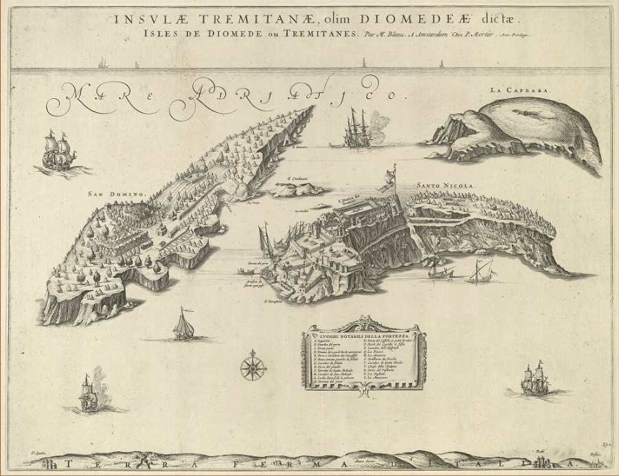Lo dimostra la stupenda mappa delle Isole Tremiti che regaliamo oggi agli amici e ai lettori di Lettere Meridiane: la disegnò Pierre Mortier, editore ed illustratore olandese specializzato nella riproduzione di mappe panoramiche, appunto, a volo d’uccello.